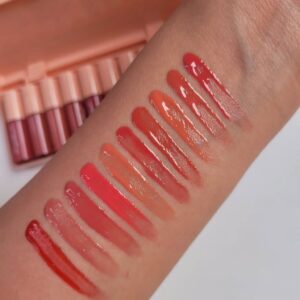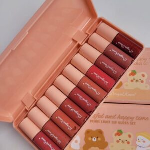 این پکیج صورتی ناز پر از رژلبای نیمه مینی جامد خوشرنگ و خوشگله با بسته بندی هلویی