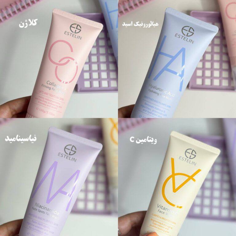 شوینده فومی صورت استلین با براش سیلیکونی | پاکسازی عمیق و ملایم در چهار مدل متناسب با پوستهای خشک، چرب، لکدار و افتاده | حاوی هیالورونیک اسید، ویتامین C، کلاژن و نیاسینامید
